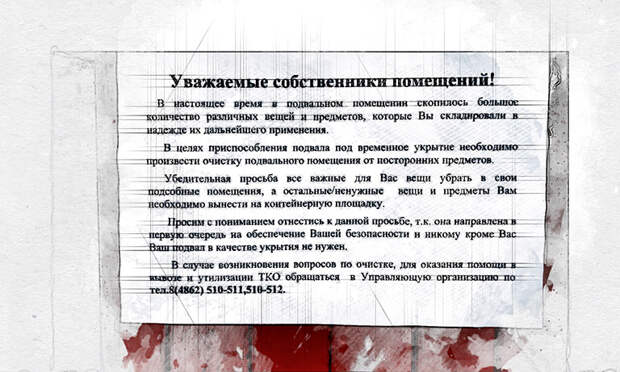 «Просим с пониманием отнестись к данной просьбе, так как она направлена в первую очередь на обеспечение Вашей безопасности. Никому, кроме Вас, Ваш подвал в качестве укрытия не нужен», — сказано в обращении
