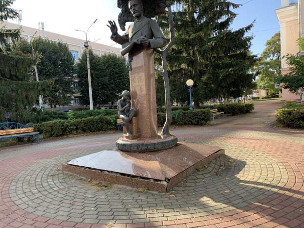 Расположенный рядом с Детской музыкальной школой № 1 памятник орловскому композитору Василию Калинникову существенно просел. На сегодняшний день постамент из красного гранита буквально разваливается: просевшая вокруг тротуарная плитка вкупе с собирающейся дождевой водой подмывают его основание.