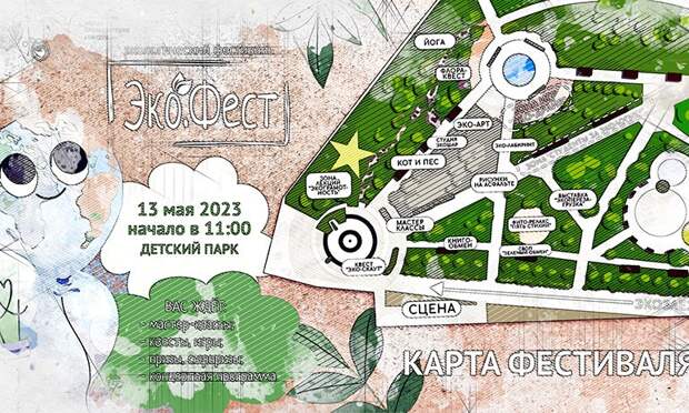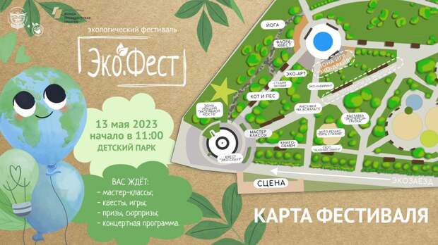 13 мая c 11:00 до 15:00 на территории Детского парка (со стороны подвесного моста) пройдёт семейный и молодёжный экологический фестиваль «Эко.Фест» (0+).