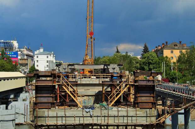 На Красный мост продолжают прибывать металлоконструкции и комплектующие к ним. Так, из 9 блоков пролётного строения уже завезено и смонтировано четыре.