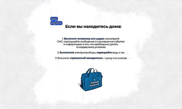Во всех случаях сотрудники МЧС рекомендуют орловцам взять с собой заранее собранный тревожный чемоданчик. С его содержимым, а также порядком действий, можно ознакомиться в карточках.