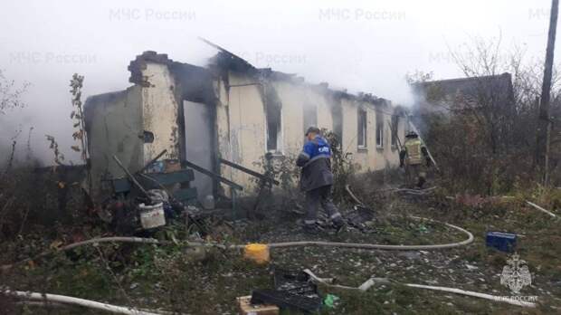 Когда пожарные прибыли на место, здание горело изнутри по всей площади, обрушилась кровля.