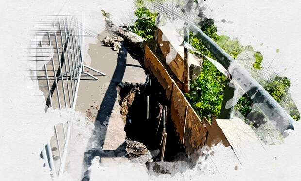 Повреждённая подпорная стена разрушается от бесконечных ливней.