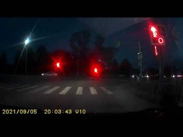 На видео видно, что водитель автомобиля Ниссан Кашкай на регулируемом перекрёстке поворачивал налево и столкнулся с питбайком.