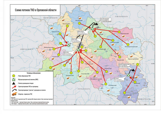 – Главное – это инфраструктура. Если коротко, где трассы – там и направления мусорных потоков. Ну и, конечно, важно какое количество мусора тот или населённый пункт производит. Например, Орёл, Орловский район, Мценск и Ливны вместе образуют более 70% относительно всего мусора в области. При этом остальные муниципальные образования производят менее 30 % мусора от общей массы. – Тем не менее, фантик в мусорке далеко не всегда вовремя вывозится. Упорядочив логистику, мы всё равно сталкиваемся с проблемами невывоза мусора – разве не так?