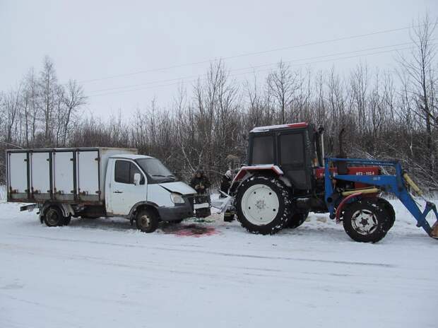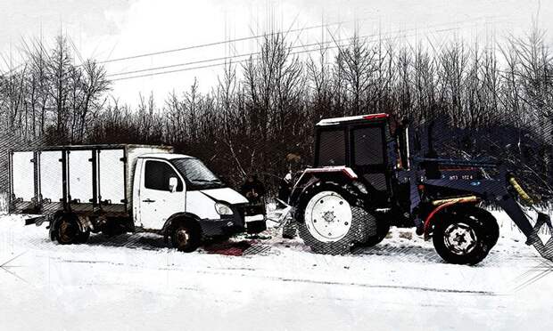 После столкновения с мужчинами автомобиль врезался в трактор, стоящий на обочине.