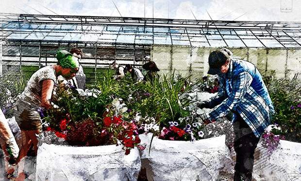 Сегодня 22 сотрудника администрации пришли на помощь «Спецавтобазе». Женщины высаживали цветы в кашпо, в это время мужчины из числа чиновников мэрии разгружали новые вазоны.