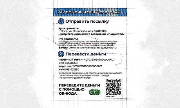 В Орловской области создан QR-код для мобильного (онлайн) внесения платежей на счёт благотворительного фонда для солдат.