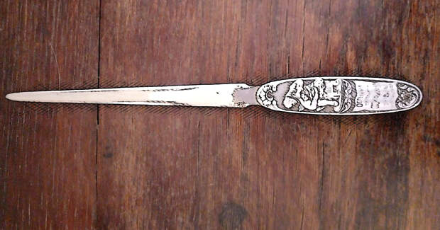 В экспозиции Дома-музея В.А. Русанова представлен экспонат – нож для бумаги. На одной стороне изображён врач, делающий прививку ребёнку, и надпись «Оспенный телятник Живописцева в г.