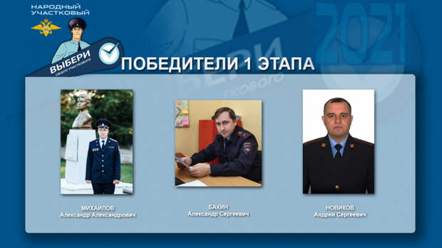 В Орловской области подвели итоги отборочного этапа конкурса МВД России «Народный участковый 2021». В регионе определились три финалиста. Это сотрудник УМВД России по городу Орлу майор полиции Александр Бакин, представитель ОМВД России по Малоархангельскому району майор полиции Александр Михайлов и капитан полиции Андрей Новиков, который служит в отделе МВД России по Орловскому району.