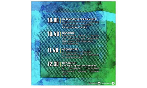 Как пообещали в мэрии Орла, в 2023 году он пройдёт в беспрецедентно широком формате. Празднование включит в себя автопробег, шествие и две патриотические акции. В 10:00 у памятника Участникам локальных войн и военных конфликтов на Наугорском шоссе военнослужащие почтят погибших при исполнении служебного долга товарищей.