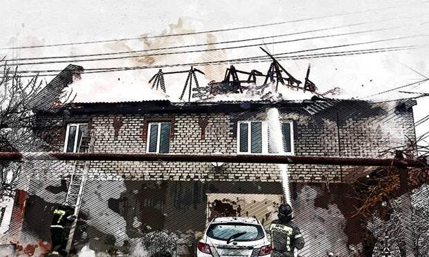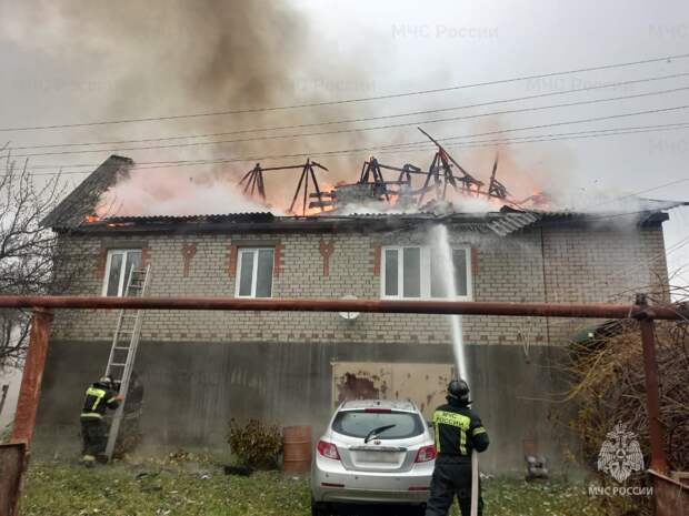 В результате пожара дом выгорел на площади 120 кв.м, полностью сгорела крыша. Спасателям удалось защитить от огня только цокольный этаж здания и стоящий рядом автомобиль.