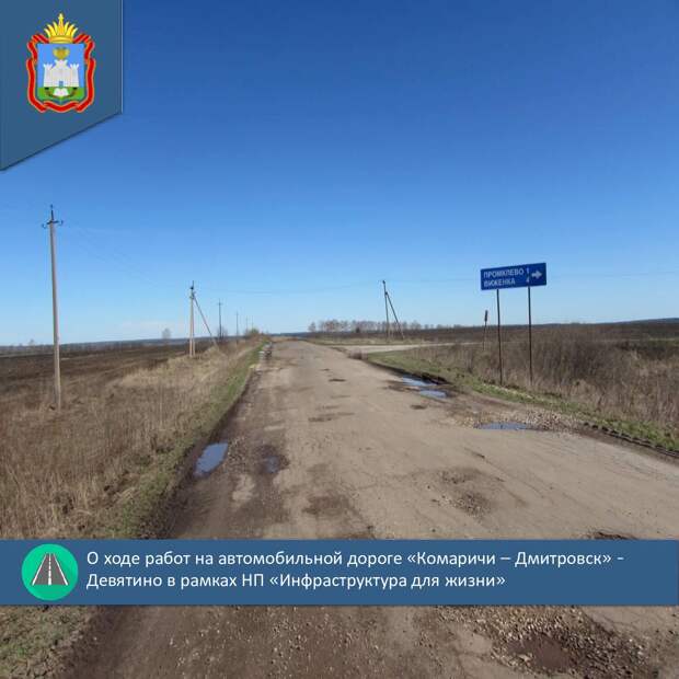 В Орловской области стартовал капремонт пяти километрового участка автодороги «Комаричи – Дмитровск» – Девятино.