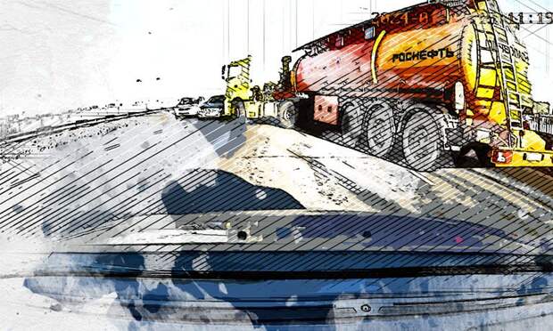 На видеоролике видно, как едущий по крайней правой полосе большегруз в какой-то момент резко сворачивает влево и выезжает на встречную полосу, цепляя там легковой автомобиль.