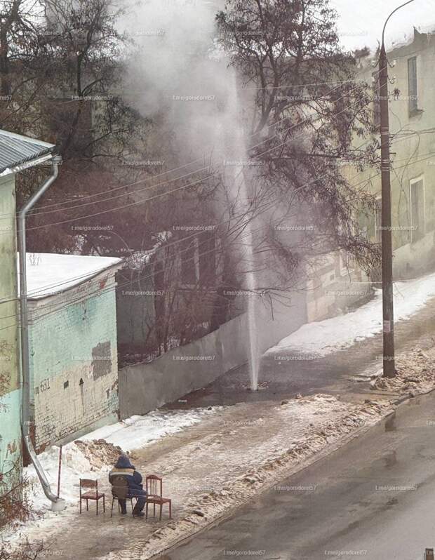 Фото дня: в Орле, в Трамвайном переулке забил новый «фонтан»