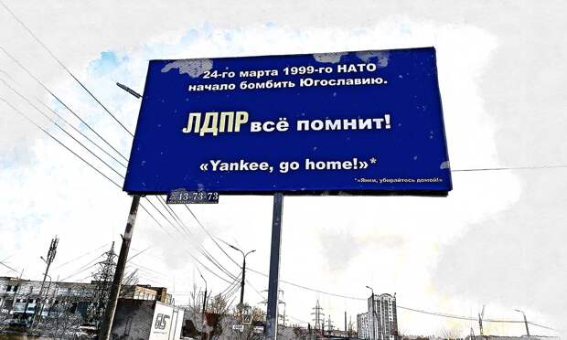 Его размещение либерально-демократическая партия приурочила к годовщине трагических событий в Югославии: 24 марта 1999 года НАТО начало воздушную бомбардировку Югославии.
