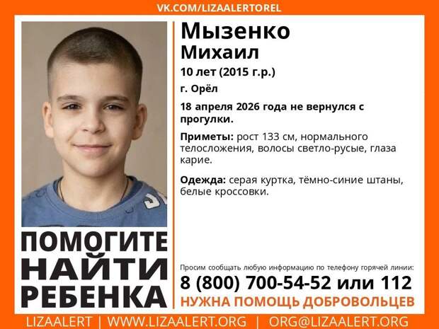 «Внимание! Помогите найти ребёнка!», – с таким кличем о помощи к орловцам обратились активисты поискового движения «Лиза Алерт». 10-летний Михаил Мызенко пошёл гулять с друзьями и не вернулся.