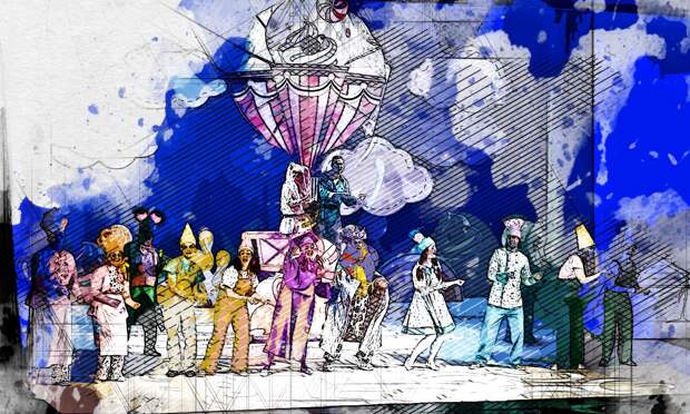 Интермедия новогодних спектаклей – это только присказка, сказка, как и положено, – впереди. На самом деле и здесь разновозрастному зрителю в меру его понимания предложат «два в одном»: сказочку для взрослых с возможностью размышлений, которая поместилась внутри волшебной и праздничной сказки-мюзикла для детей «Летучий корабль».