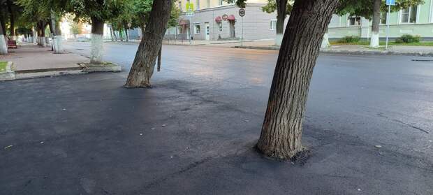 Судя по приложенной фотографии, подрядчик, занимающийся очередным благоустройством улиц города, не стал особо церемониться с мешающими ему деревьями и просто залил всё асфальтом.«И куда смотрит природоохранная прокуратура в лице г-жи И.П. Булгаковой? Может, деревья вообще битумом залить с зимы и посмотреть, что они будут делать?», – задался вопросом автор поста.
