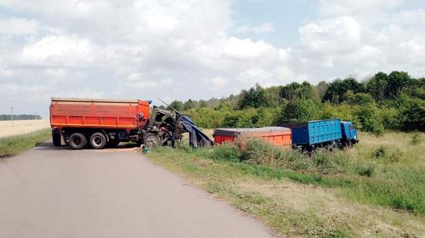 В Орловской области на автодороге «Колпна — Дровосечное» произошло ДТП. Столкнулись два КамАЗа.