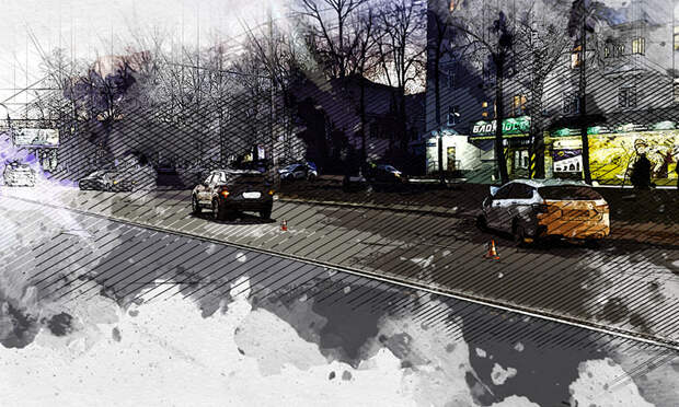 Далее Веста врезалась в дерево и остановилась. В свою очередь, Лада Гранта от удара врезалась в Мерседес Бенц, который двигался позади неё.