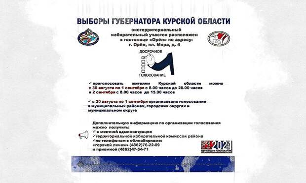 Для тех временных переселенцев, кто разместился в ПВР за территорией города Орла, с 30 августа по 1 сентября будет организовано выездное голосование. Для того, чтобы отдать свой голос на выборах, жителям Курской области понадобиться только паспорт.