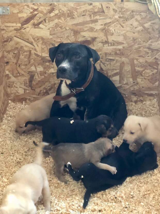 Маму щенков бойцы ЧВК «Вагнер» спасли в Соледаре и взяли с собой в Бахмут. Там питбуль родила семь очаровательных щенков – 2 девочек и 5 мальчиков. Во время одного из боёв собака подорвалась на растяжке и была сильно контужена, но военнослужащие её выходили и забрали с собой. Забрать с собой в Беларусь животных бойцы не смогли, поэтому оставили щенячье семейство в Орле. Сейчас животные находятся на передержке у орловчанки Екатерины, которая сама занимается разведением питбулей и знает всё об особенностях этой породы.– Предположительно, маме щенков 2,5-3 года. Сейчас она плохо слышит после контузии, тяжело идёт на контакт с собаками. Ей требуется осмотр ветеринара, но пока мы не возили её к врачу, потому что боимся, что после этого она перестанет кормить щенков. Собака, конечно, исхудала от стресса. Как рассказали бойцы, там, в зоне СВО, гуляет много породистых собак, оставшихся без хозяев. Судя по щенкам, питбуль могла «загулять» с одним из породистых псов. Щенки точно являются метисом. Есть что-то от лабрадоров, что-то от немцев. Но точно собаки вырастут крупные. Им от силы недели две-три, – рассказала ОрелТаймс Екатерина.