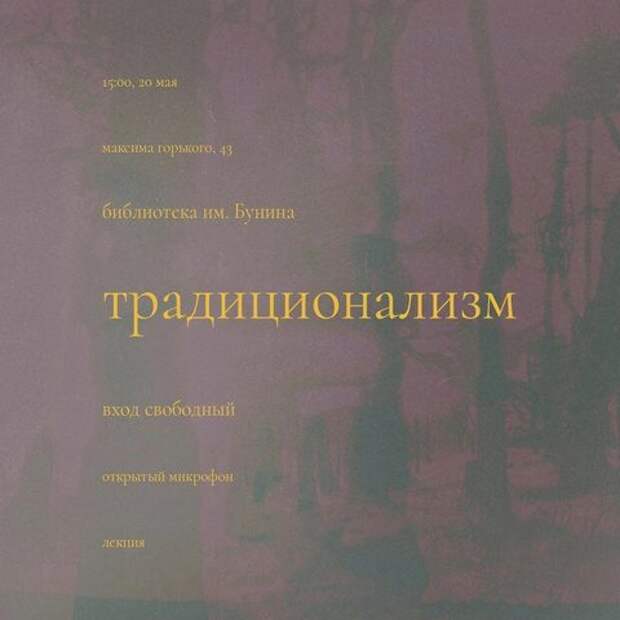 В программе встречи – вводная лекция о традиционализме, а также открытый микрофон: любой желающий сможет поделиться тематической поэзией.